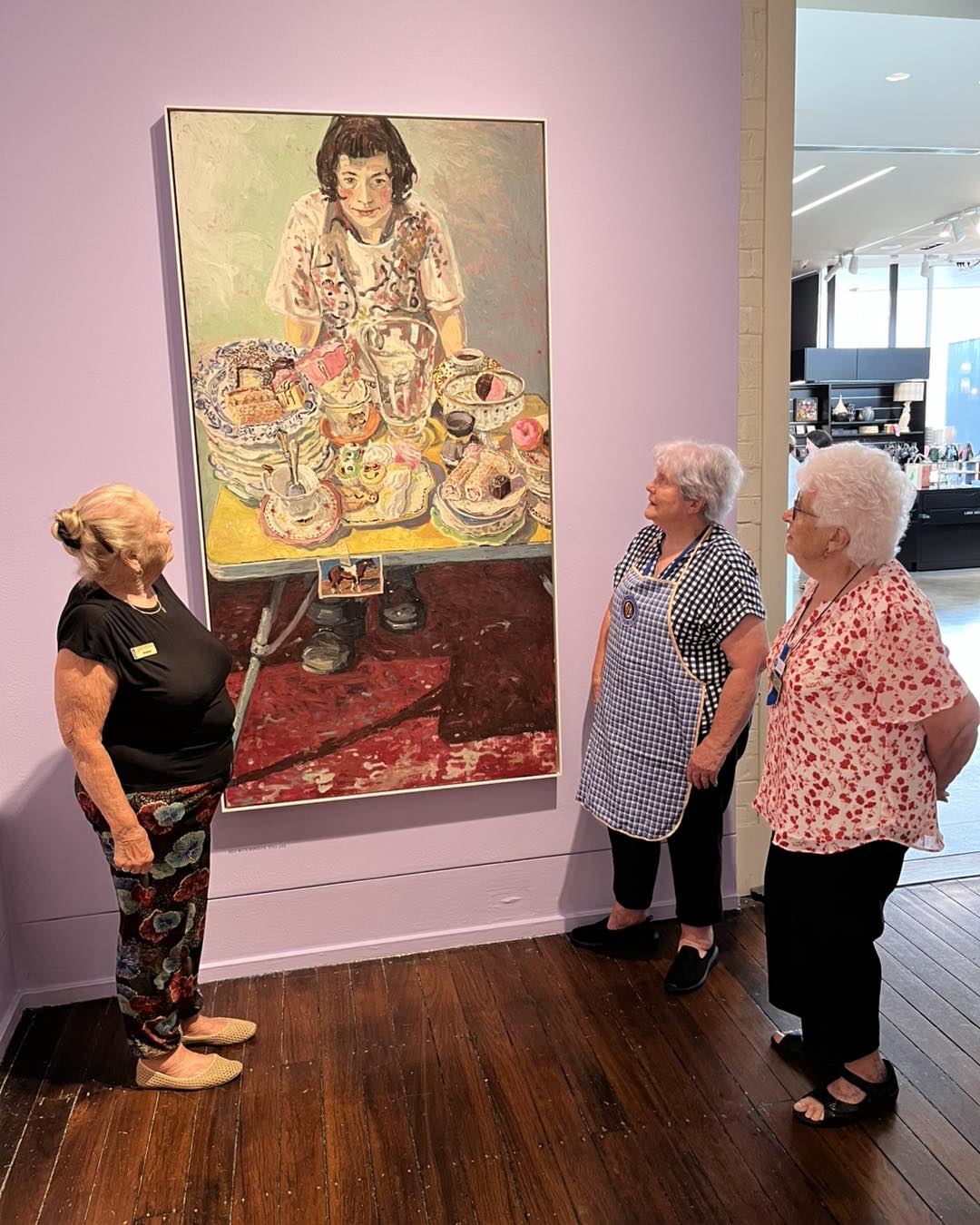 Left | Margaret Enright, President HRA & HA, Barbara Heckman and Joy Palmer our directors admiring the work of Lucy Culliton.
